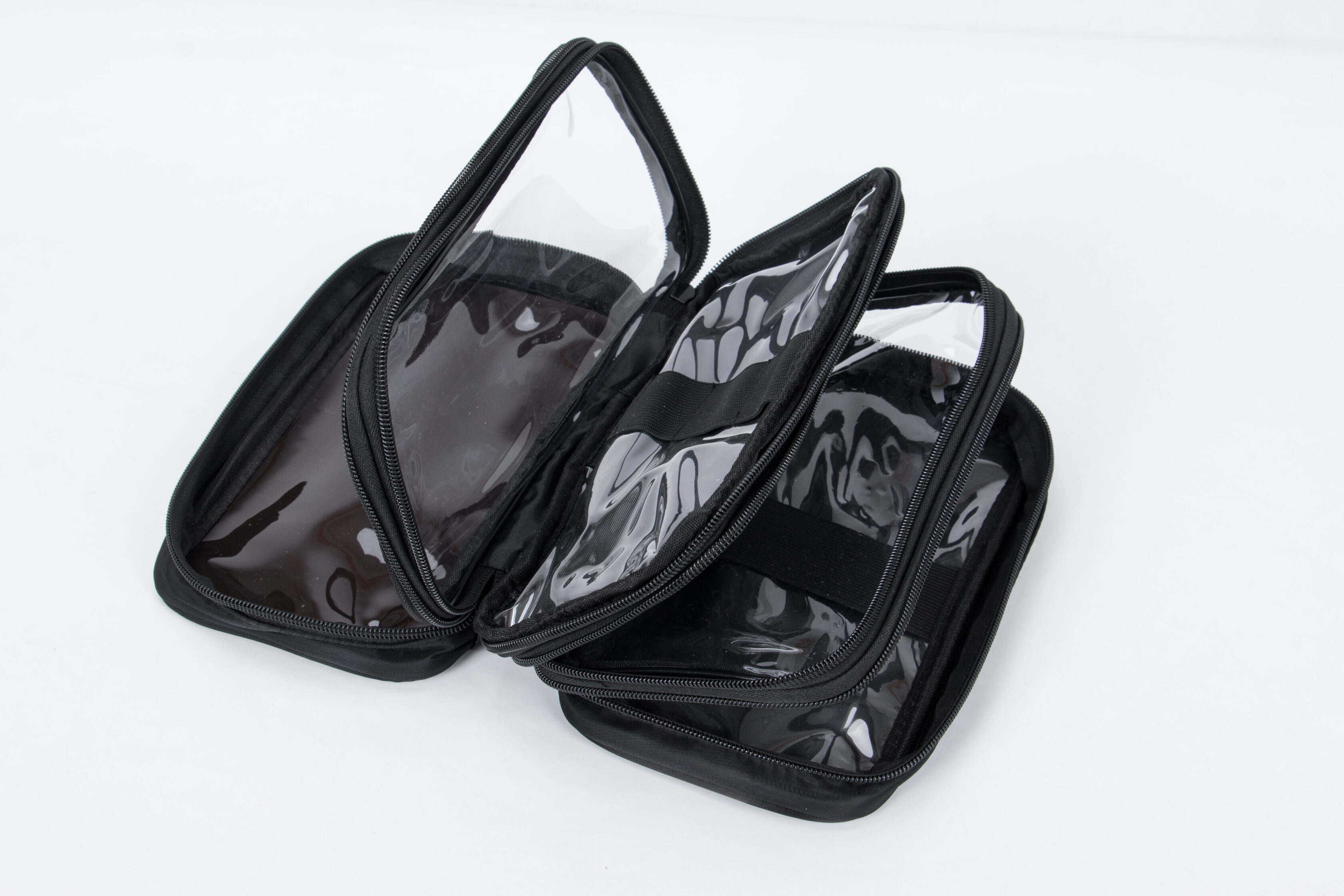 Ova praktična kozmetička torbica idealna je za sve vizažiste, frizere i beauty profesionalce koji žele organizirano i pregledno držati svoju opremu. S prozirnim PVC gornjim dijelom i više pretinaca, ovaj neseser za šminku omogućava brz pristup svim proizvodima – bez pretraživanja.